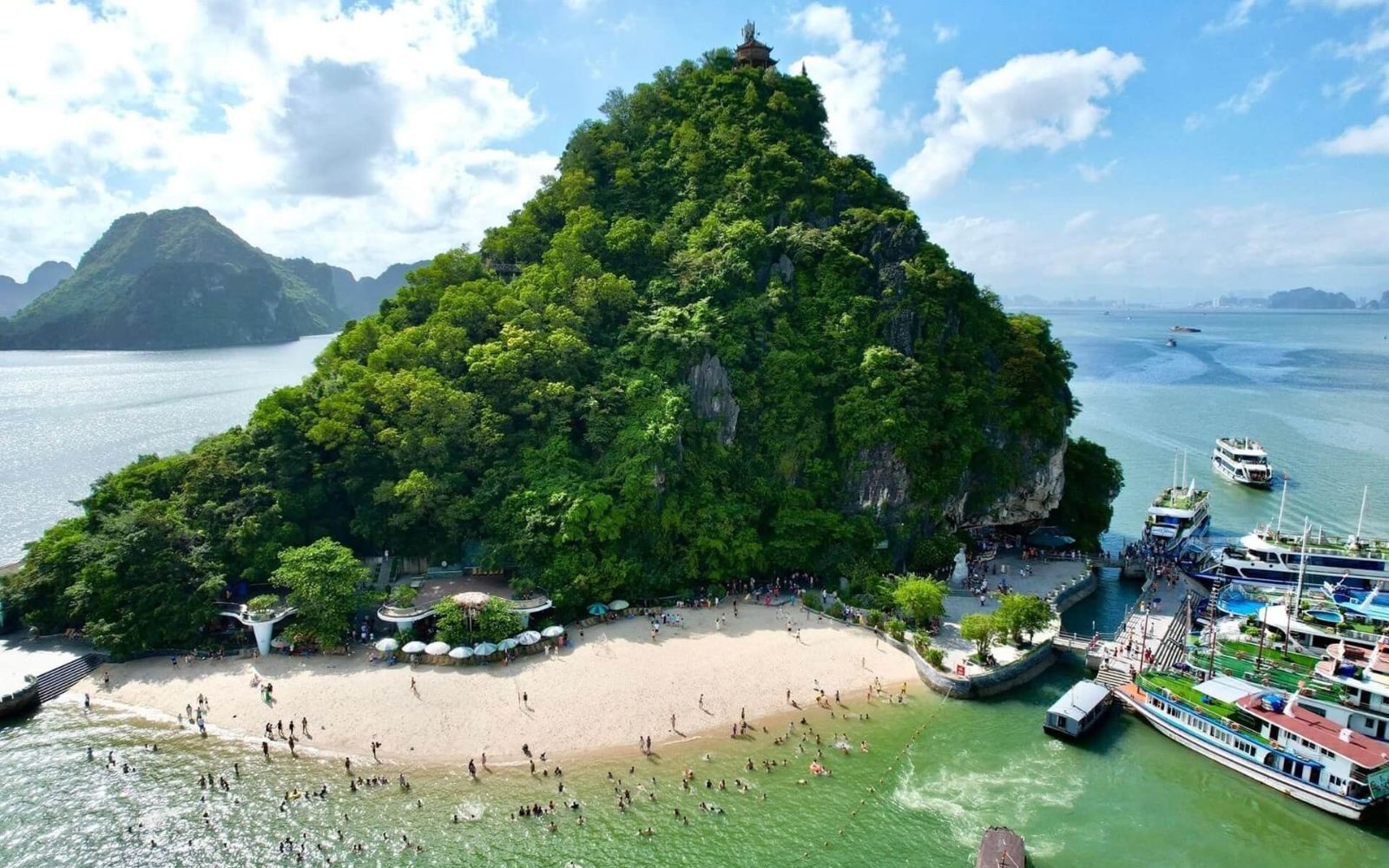 • Stop at Titov Island for panoramic views of Halong Bay.